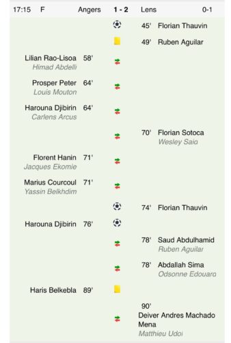 Valeureux, le Racing a livré un match d'équipe pour arracher un 4⃣e succès de suite et s'emparer du trône de leader pour la première fois depuis 21 ans. Un succès collectif dédié à Jonathan Gradit. Bravo Messieurs ! 👏@AngersSCO 1⃣-2⃣ RC Lens#SCORCLpic.twitter.com/SK9Zgm2aCx