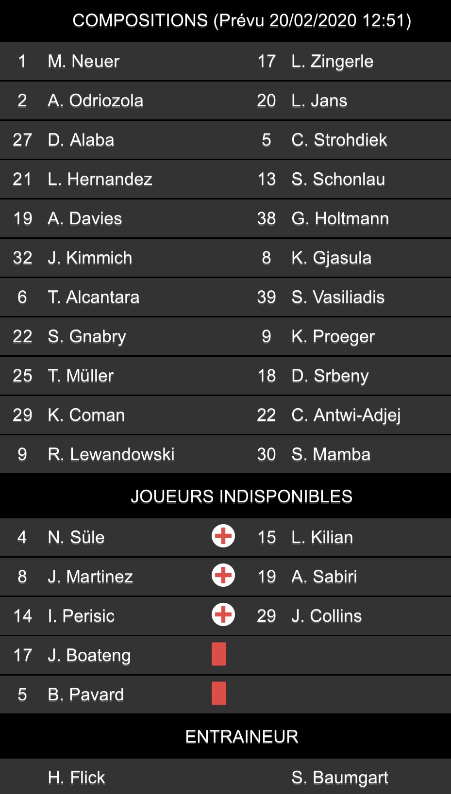 Bayern Munich vs Paderborn les compositions probables