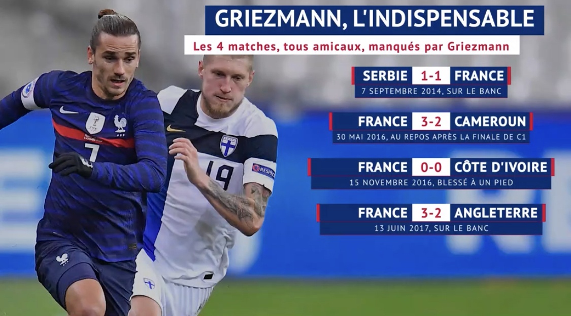 Antoine Griezmann a battu dimanche au Kazakhstan (0-2) le record du nombre d’apparitions consécutives sans manquer un match avec les Bleus.Source pour voir la vidéo https://www.dailymotion.com/video/x809se4
