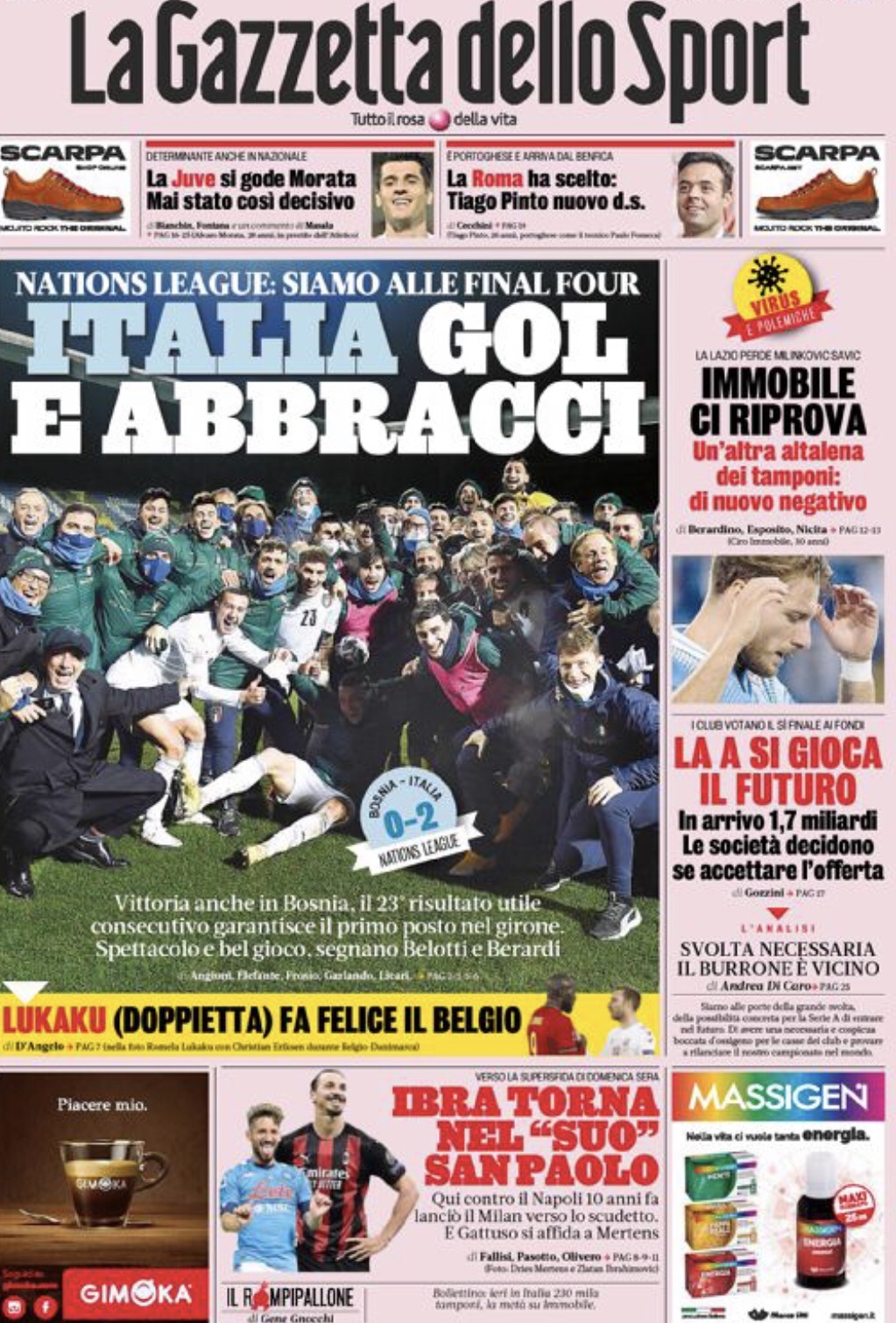 La revue de presse des principaux journaux sportifs du jeudi 19 novembre 2020.