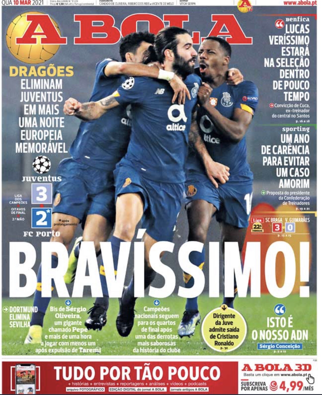 Les Unes de la presse portugaise et italienne après la qualification de Porto en Ligue des Champions.