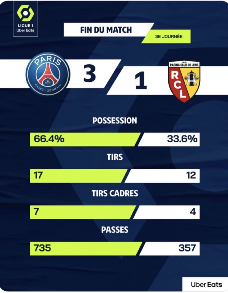 Ligue 1 2023/2024 J3: Paris SG – Lens 3-1, les stats