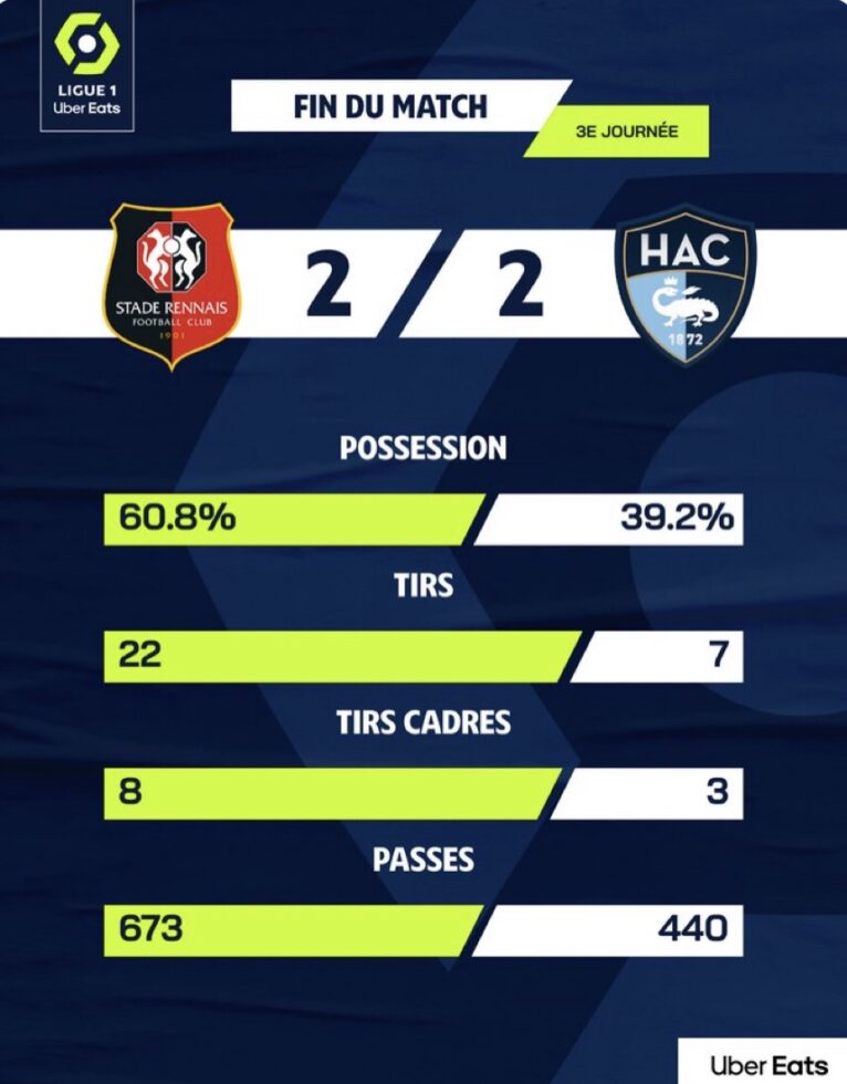 Ligue 1 2023/2024 J3: Rennes – Le Havre 2-2, les stats