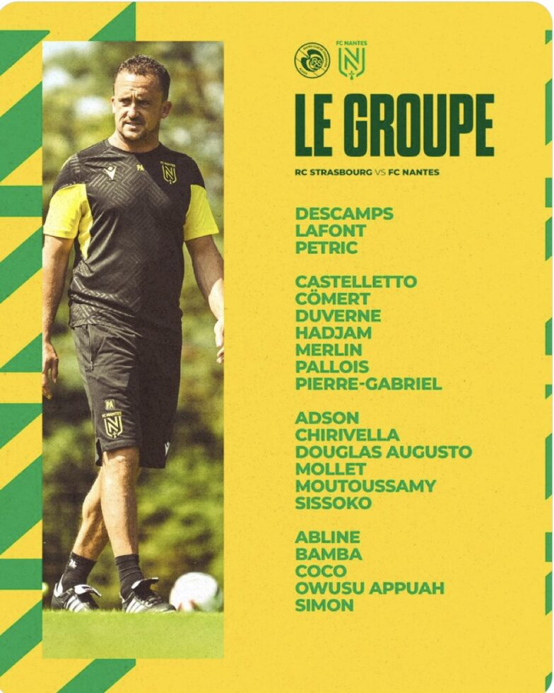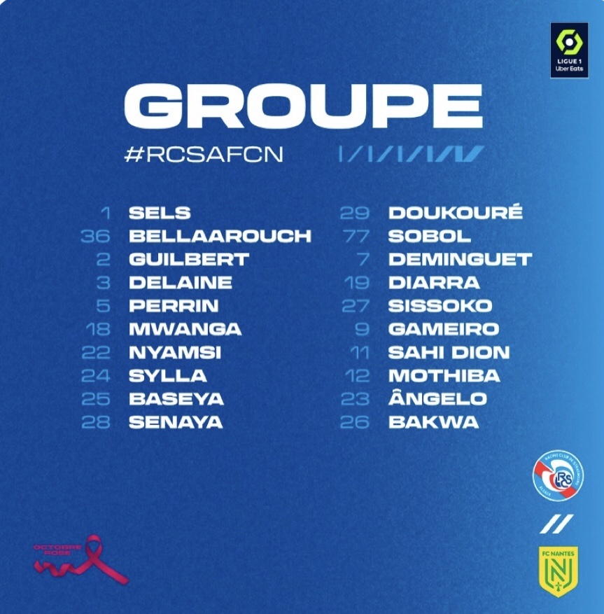 Ligue 1 8ème journée. RC #Strasbourg – FC #Nantes, les groupes convoqués.