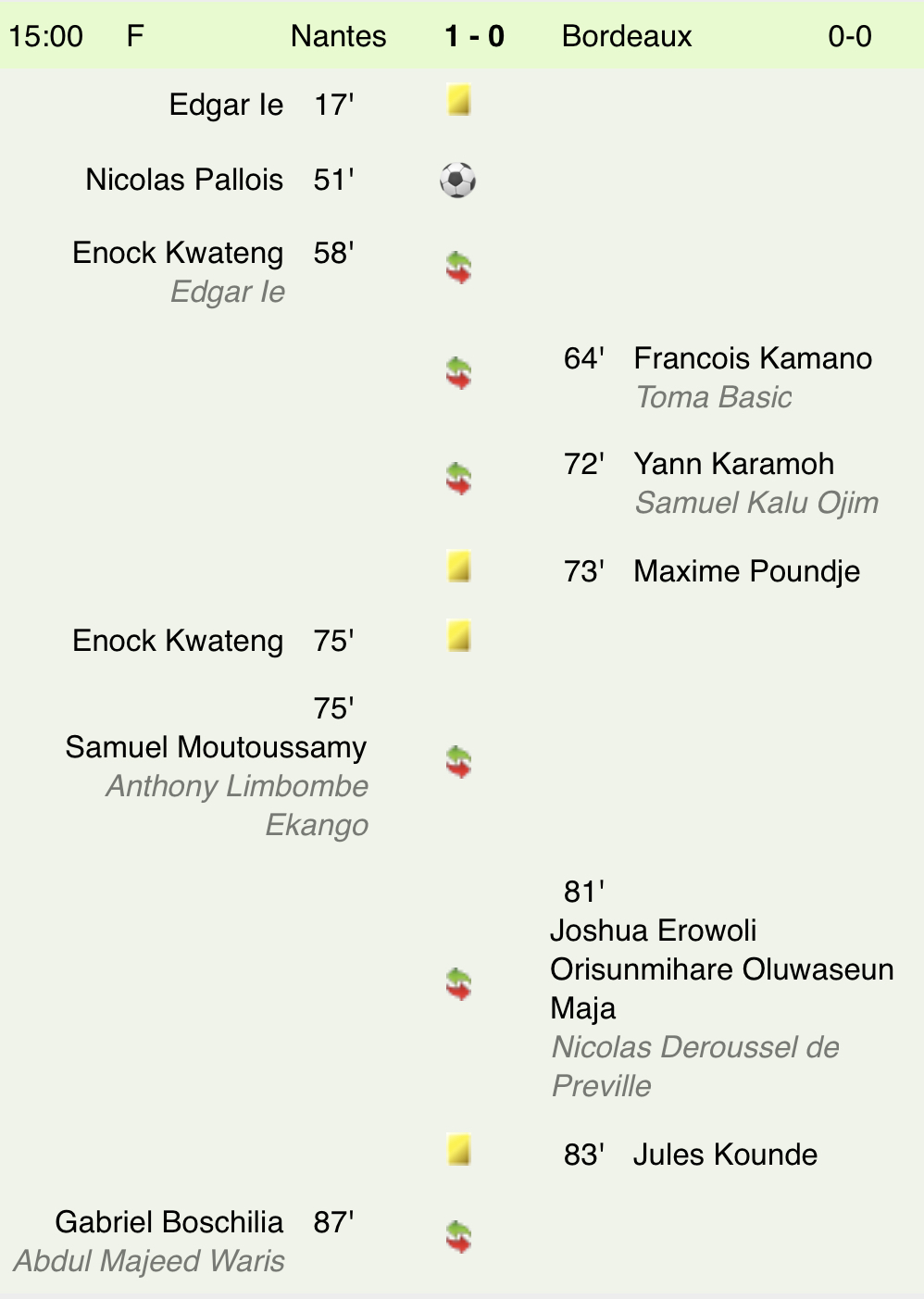Nantes vs Bordeaux 1-0 les faits du match