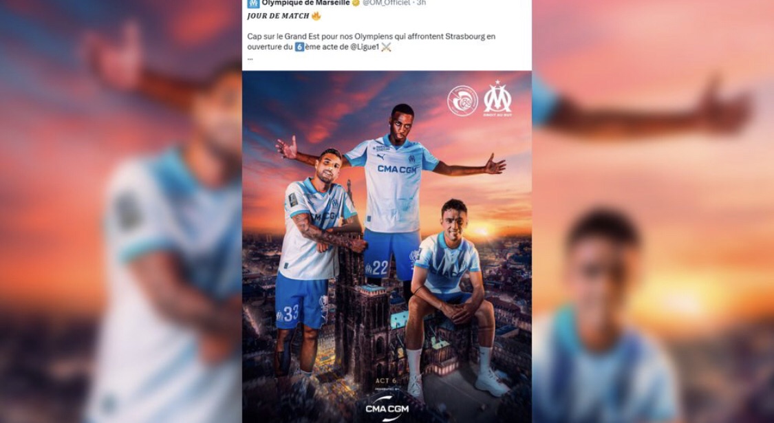 RC Strasbourg Alsace Pour annoncer son match contre le Racing ce vendredi soir, l’OM a publié sur ses réseaux sociaux une image sur laquelle on voit…