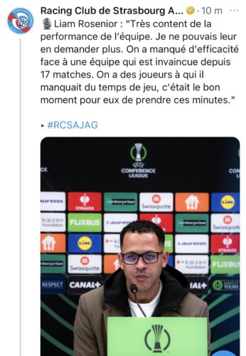 RC Strasbourg – Jagiellonia Bialystok 1-1, Liam Rosenior très content de la performance de son équipe.