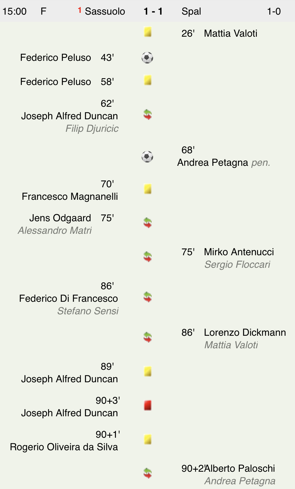 Sassuolo vs Spal 1-1 les faits du match.