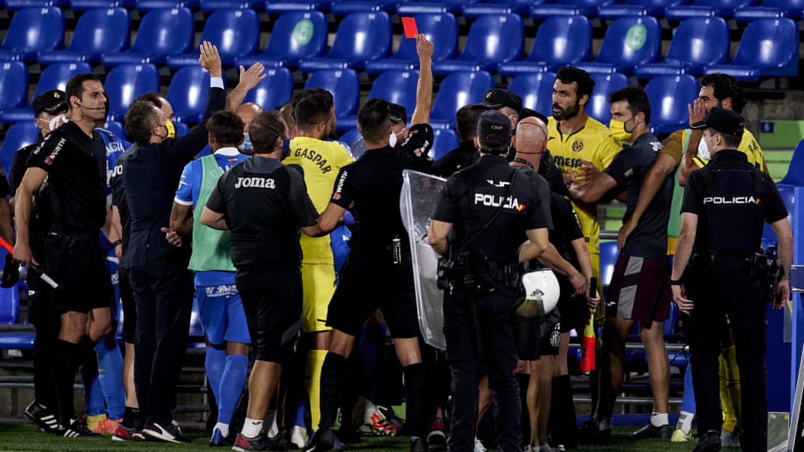 À l’issue d’un match à enjeu entre Getafe et Villarreal, une bagarre générale a éclaté entre les joueurs et les staffs des deux équipes. Une intervention policière a été nécessaire pour calmer la situation. ➡️